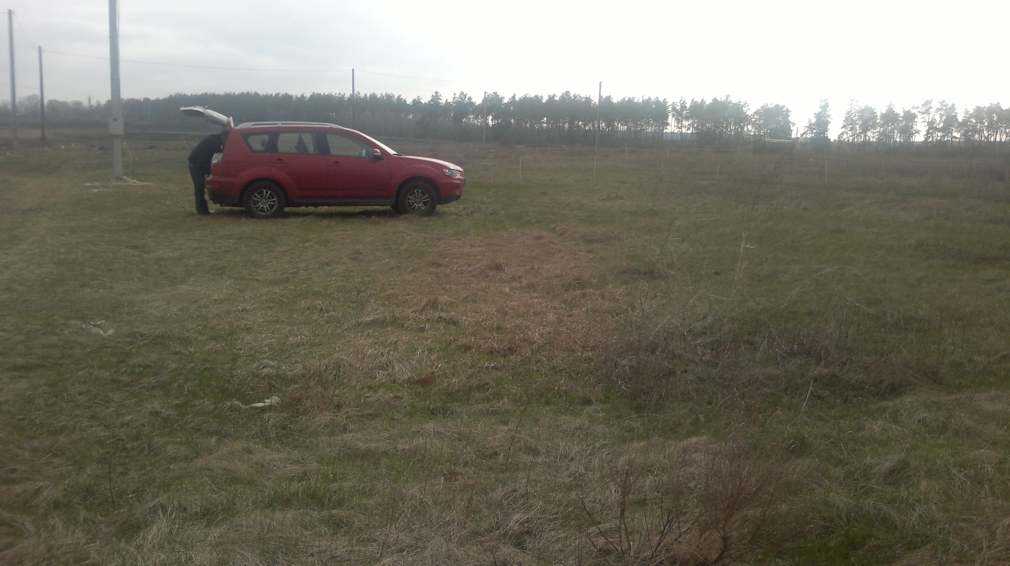 Апрель 2012. Антон взял отпуск, так, чтобы удлинить его за счет майских праздников. К нам в помощь приехал родственник из Харькова — Григорий, имеющий опыт строительства. Прикупив в «Эпицентре» пару лопат, ведер, кувалду и рулетку мы приехали в наше «чисто поле». Однако существует три условия без которых не следует начинать любое строительство — это …