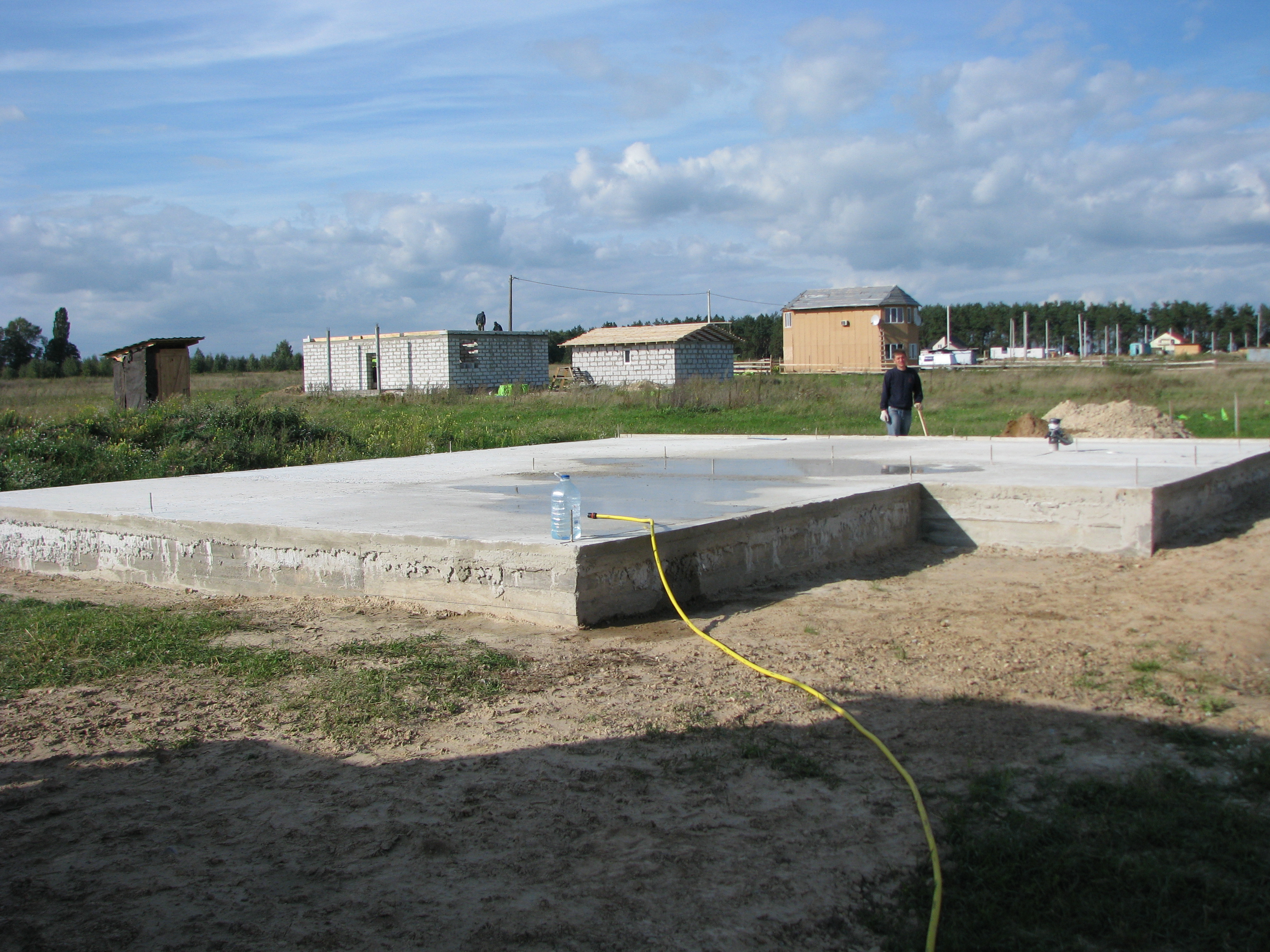 2012-08-24-364 2012-08-24-383 2012-08-24-404 2012-08-24-405 2012-08-24-406 2012-08-24-407 2012-08-24-408 2012-08-29-435  Готовая плита отстаивалась до весны 2013 года. Сначала мы хотели осенью 2012-го начать коробку дома, но… решили купить соседний участок и расширить «владения». Ведь такого шанса, когда все построятся и обсутроятся может не быть годами. И потом, земля хорошее вложение — она к 2014 году стала более чем в 3 раза дороже. За осень 2012-го мы закончили септик. Об этом пост №8.