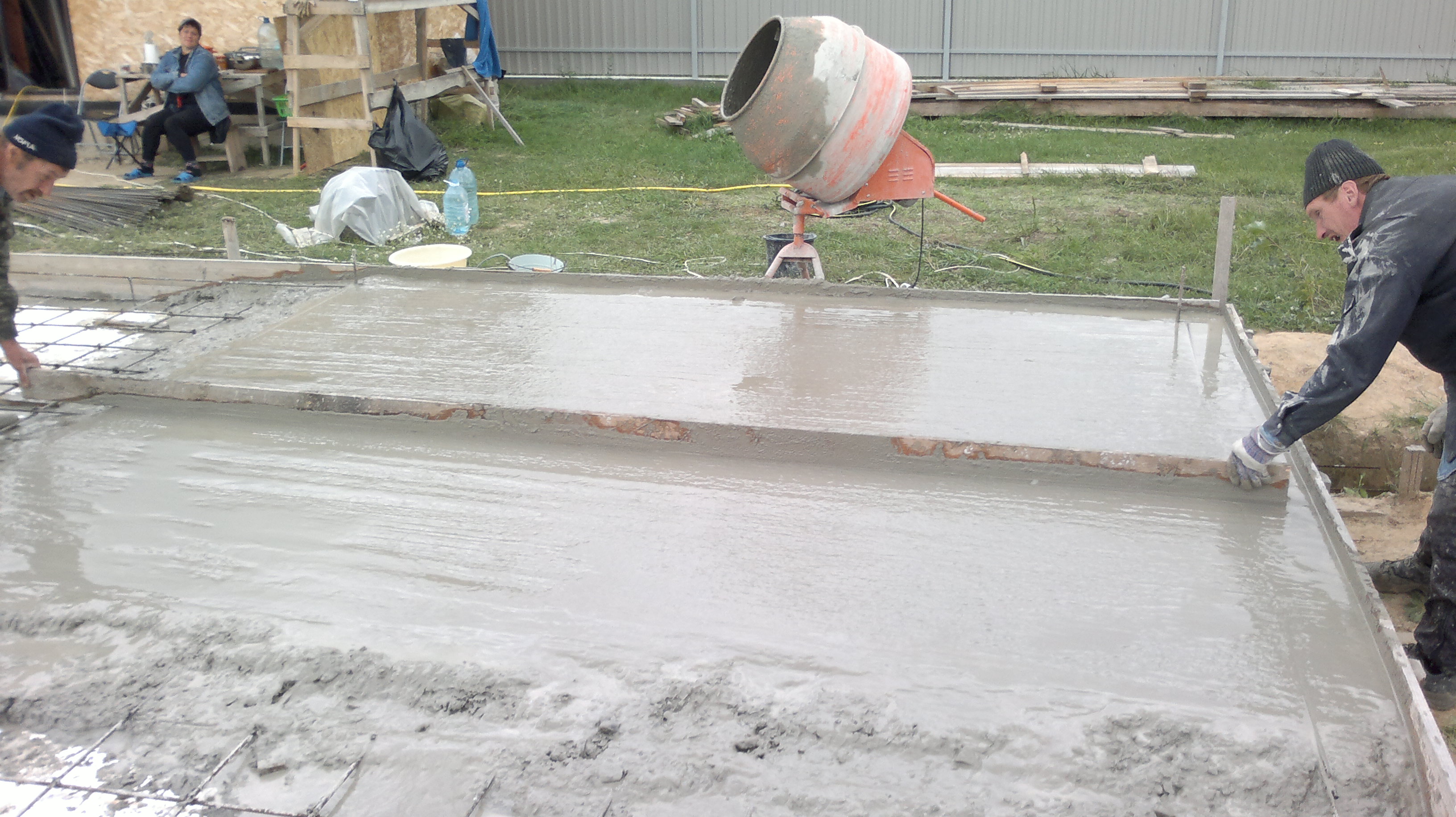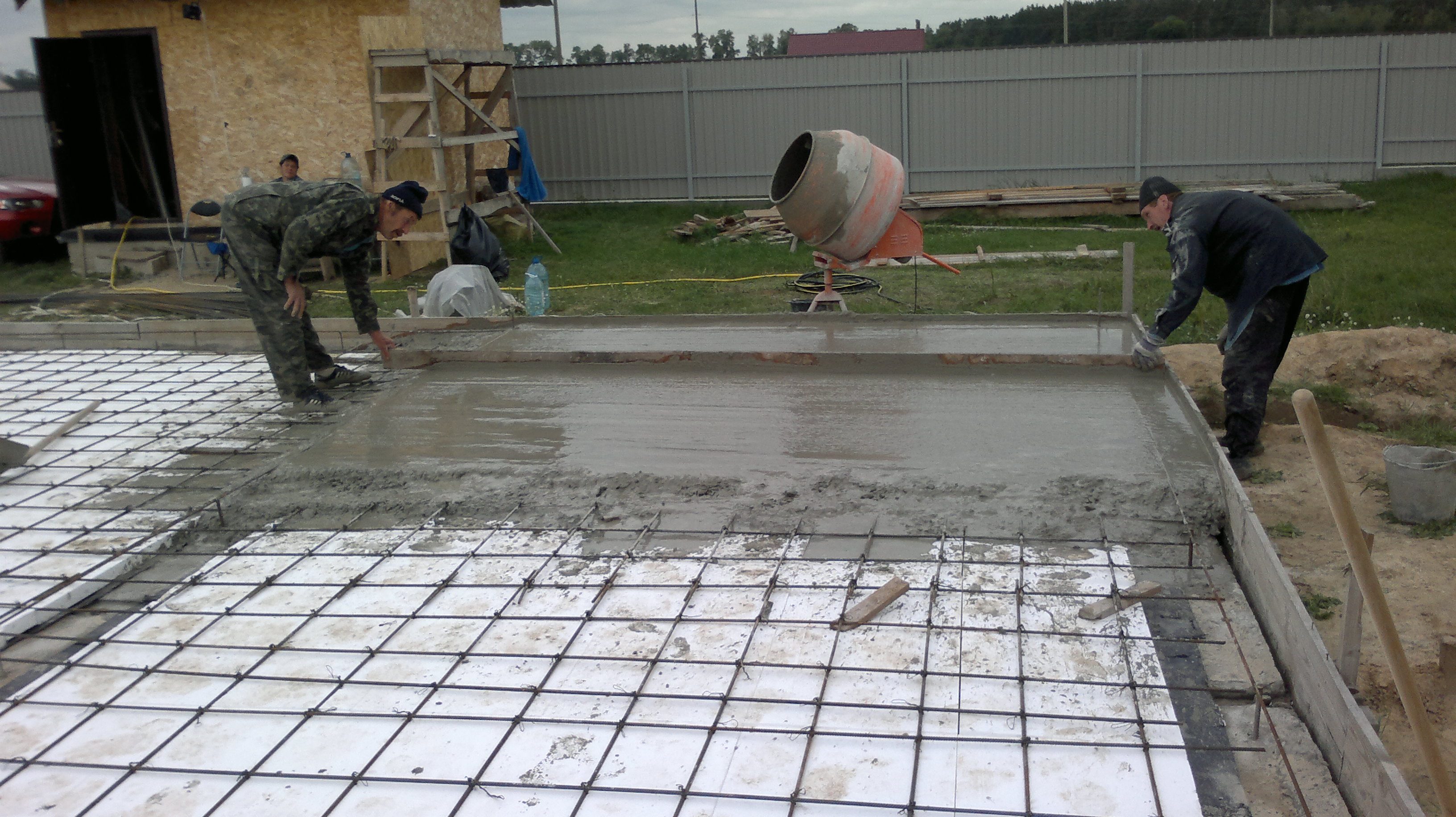 27 августа 2012. Плита 15 сантиметров заливалась самостоятельно, бетон делали бетономешалкой.