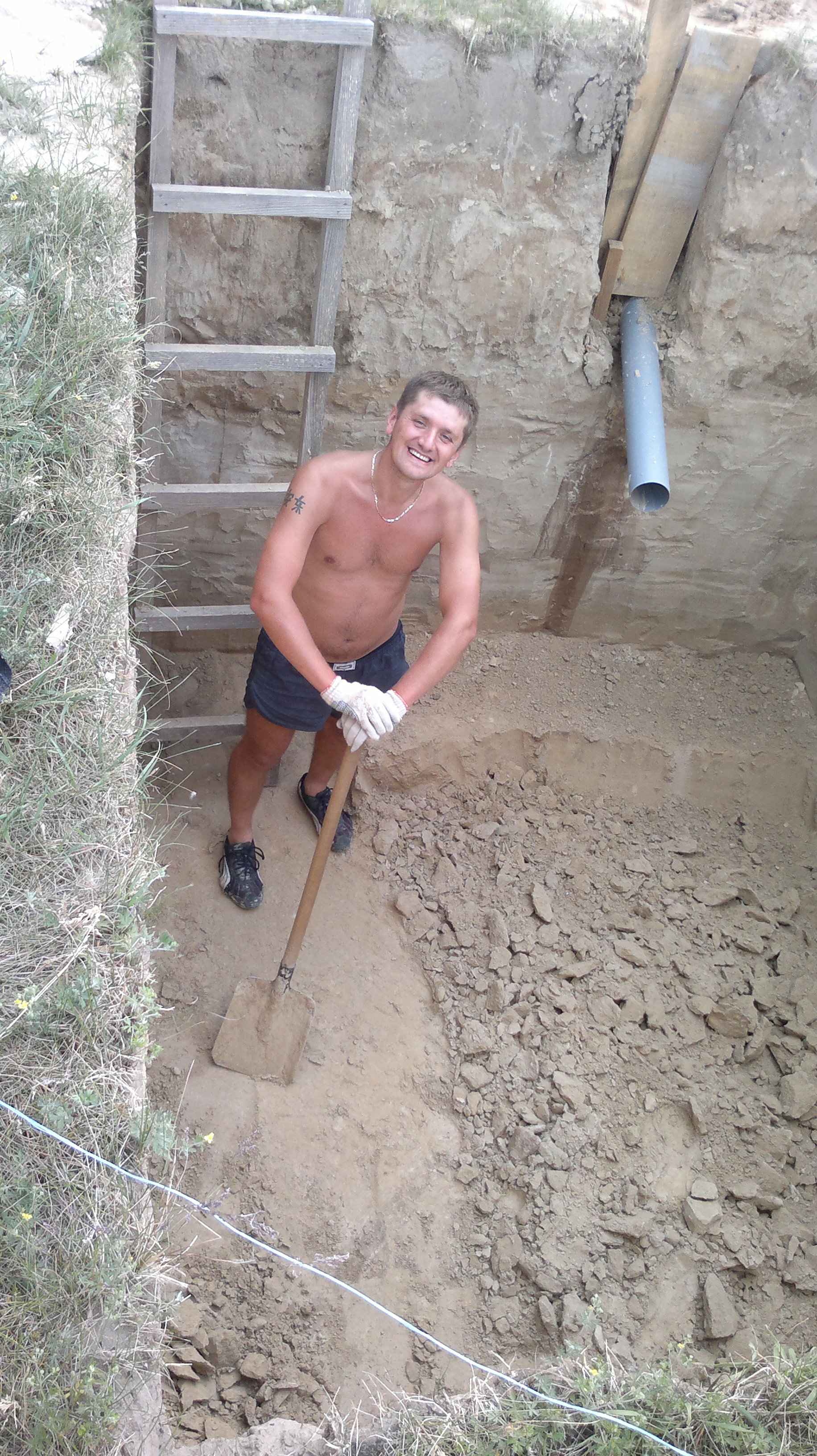 Итак, сначала роем котлован. Можно конечно заказать экскаватор, но муж копал самостоятельно. Понемногу на выходных. Слишком близко располагать септик от дома нельзя. Это запрещается и санитарными, и строительными нормами, так как выкапывание большого котлована близ фундамента дома нежелательно. От дома нужно удалить септик минимум на 5 метров.