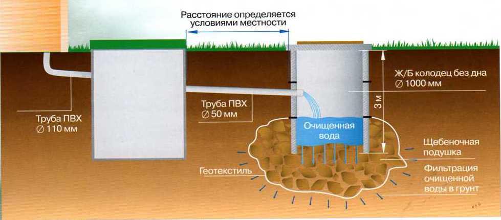 Вторая камера септика – это фильтрующий колодец. Она не имеет дна, а под камерой устраивают подушку, изготовленную их щебня или гравия. Эта подушка используется для механической фильтрации воды, то есть для удаления тонких взвесей.