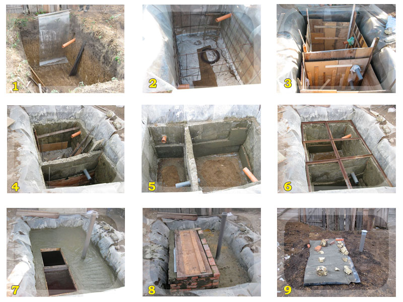 - Септик из сборных железобетонных плит или готовых бетонных колец;