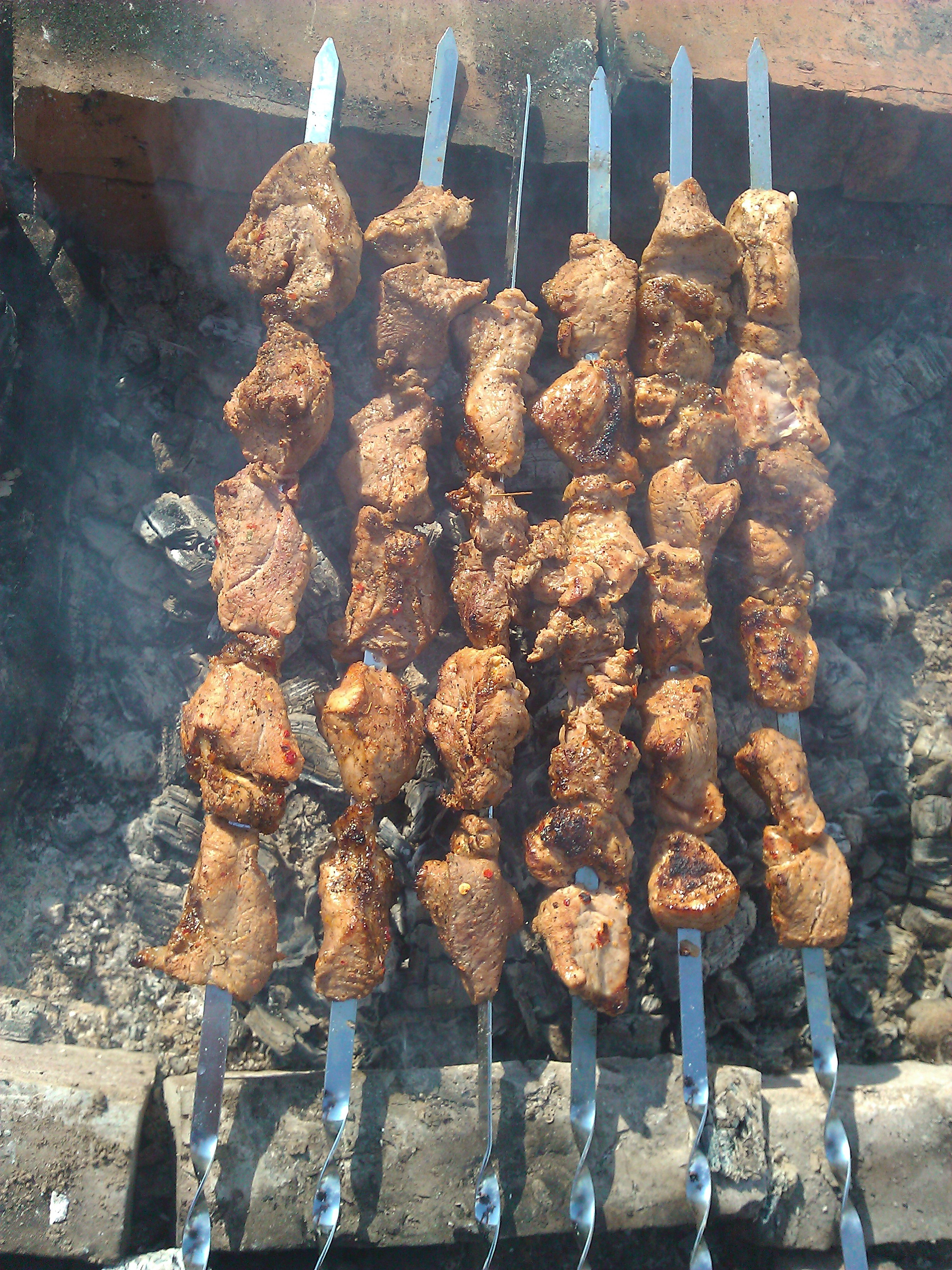 Овощи гриль. Тут есть два проверенных рецепта. Первый — овощи (перец, баклажан, помидор, кабачок, лук, грибы) режем и маринуем (масло оливковое пару ложек, сок лимона, соль и прованские травы, чеснок по желанию) и жарим над углями на сетке. Второй вариант — все эти же овощи целиком на шампур и жарим на языках пламени (да-да) до полного обугливания, потом снимаем обдаем холодной водой и очищаем от черной шкурки, режем на кусочки и можно есть или по желанию можно перемазать такой же заправкой как выше для маринада. М-м-м.
