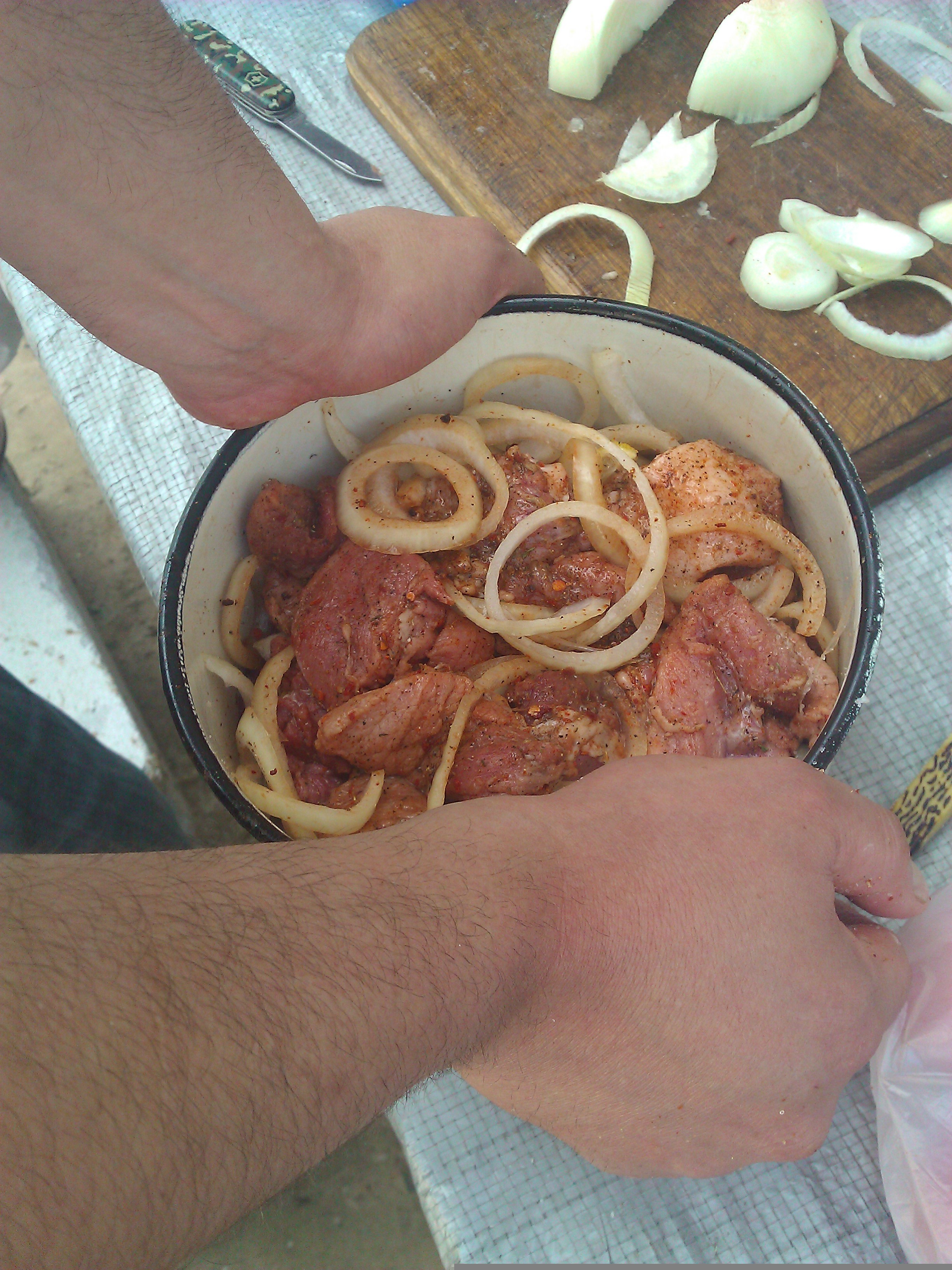 Хороший, проверенный, рецепт маринования мяса — обмазать его кашицей из пару киви, соли, перца и мелко рубленного лука. Любое мясо становится очень мягким.