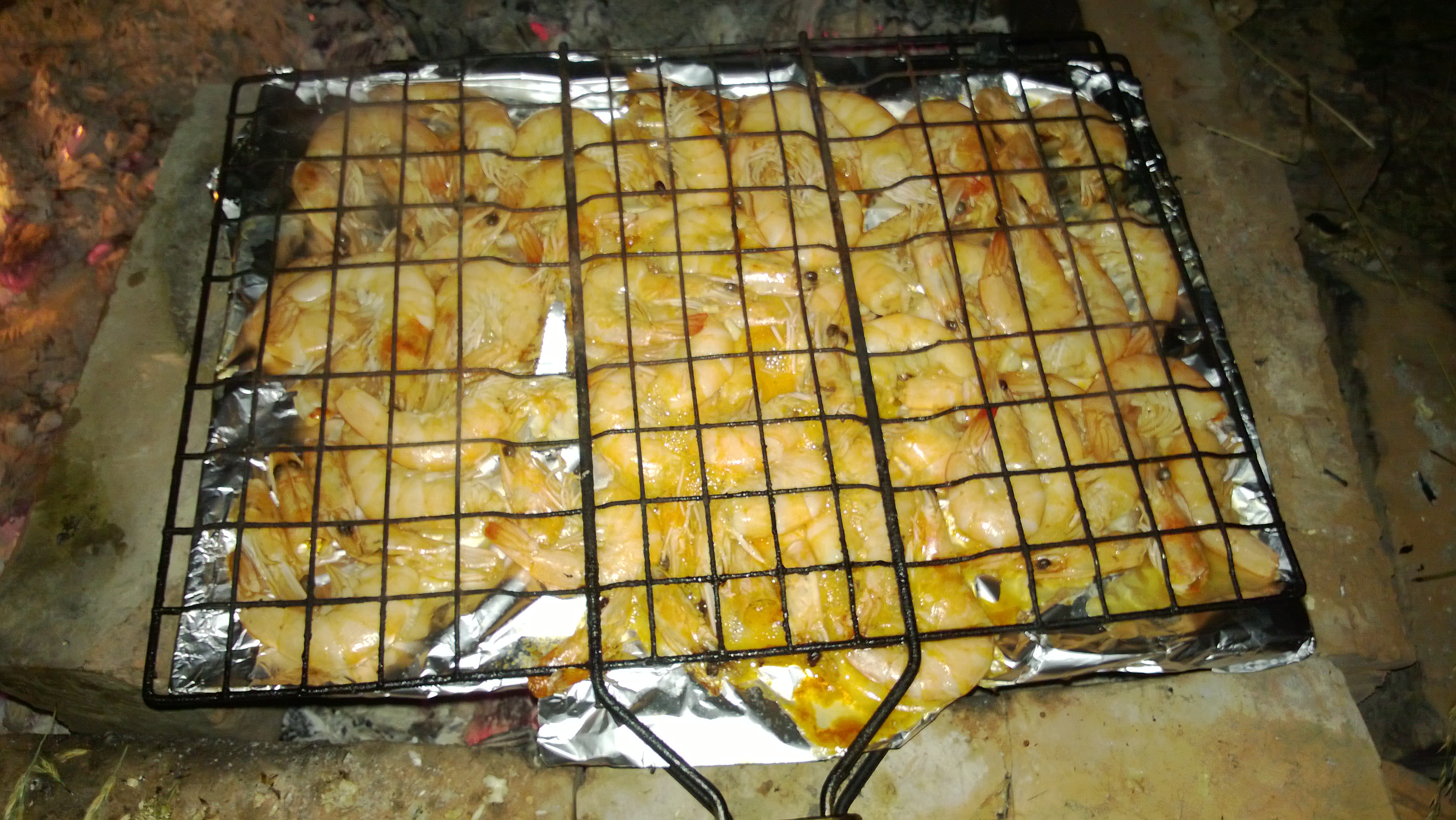 Очень хорошо идет любая рыба. Лаврак, карп, камбала. Выпотрошить, посолить и смазать маслом, завернуть в фольгу и жарить на сетке над углями.