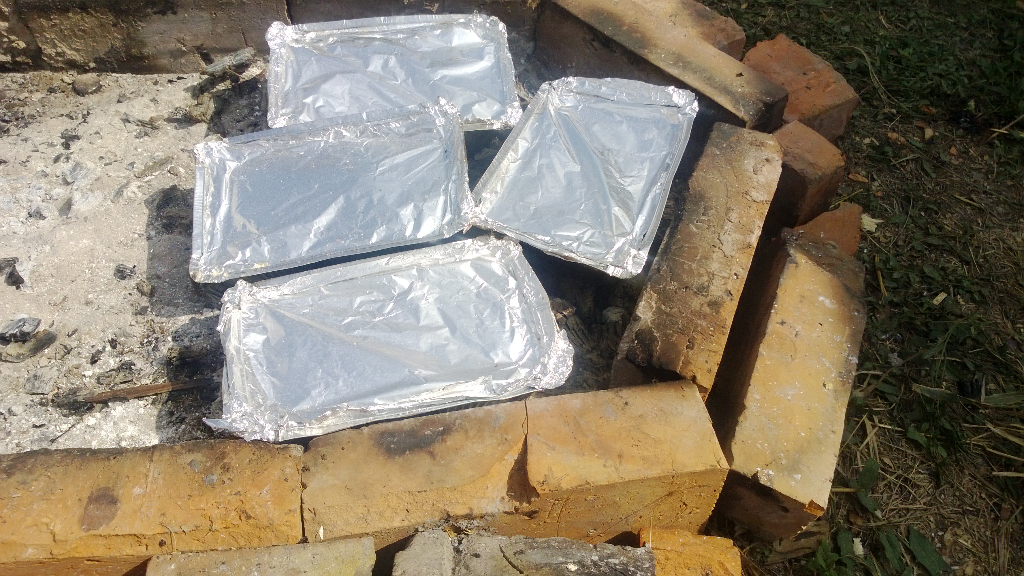 На костре удобнее всего готовить в фольге, а еще лучше в готовых судках из плотной алюминиевой фольги. Они продаются уже с крышками и удобными бортиками чтобы закрывать. Есть разной емкости, и даже поддоны для гриля. В них можно делать жаркое с овощами, мясо или рыбу, картошку, грибы, мидии… в общем почти все. Ставлю я их прямо на угли. Конечно вам не помешает еще тренога и котелок (мы его брали у соседа). А также пару сеток для мяса.