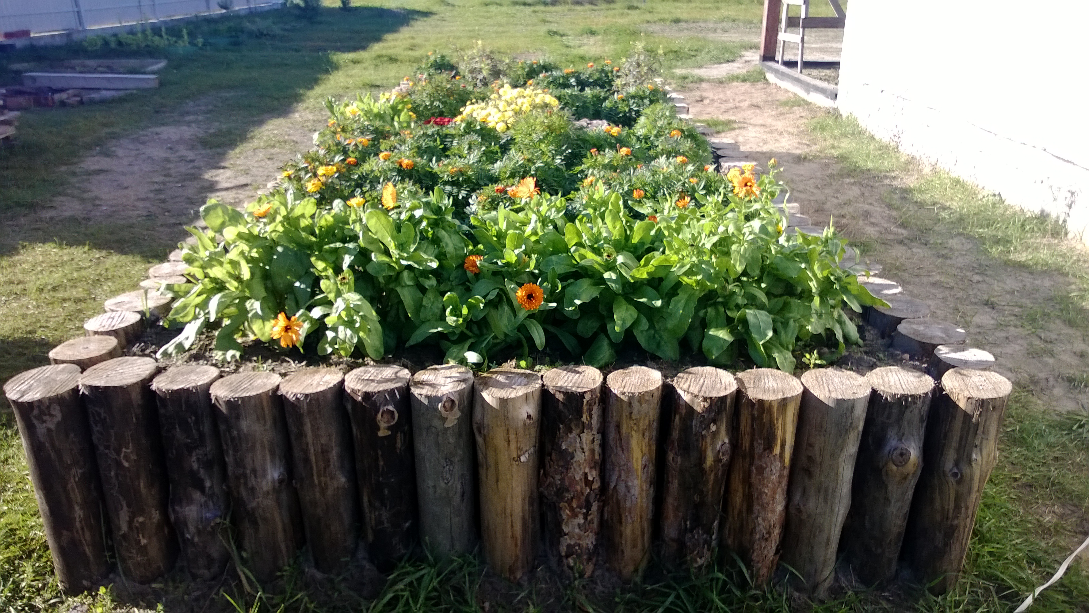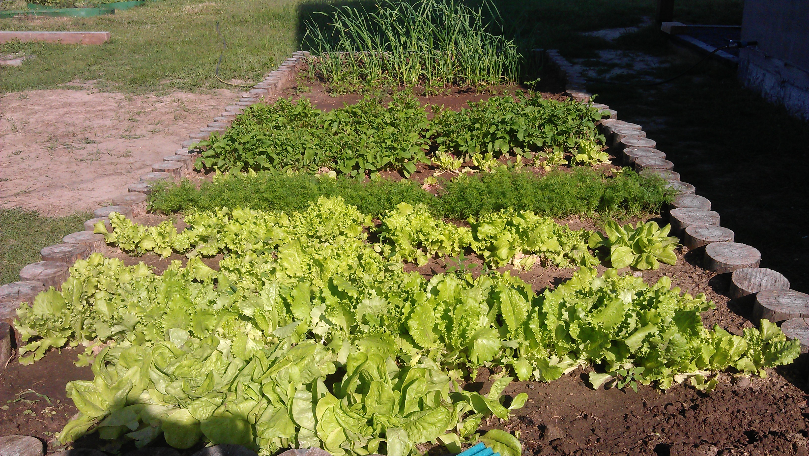 И до сих пор (февраль 2015) в морозилке заготовленный шпинат и укроп не съеден. Накрывать агроволокном такую клумбу — само удовольствие: поставил дуги, накрыл волокном и степлером к бревнам пристегнул. Все. Красота. Поливать — одно удовольствие. Полоть — не отберешь тяпку) Срывать — мечта, взял ножнички и благородно срезал, не ползая по земле.