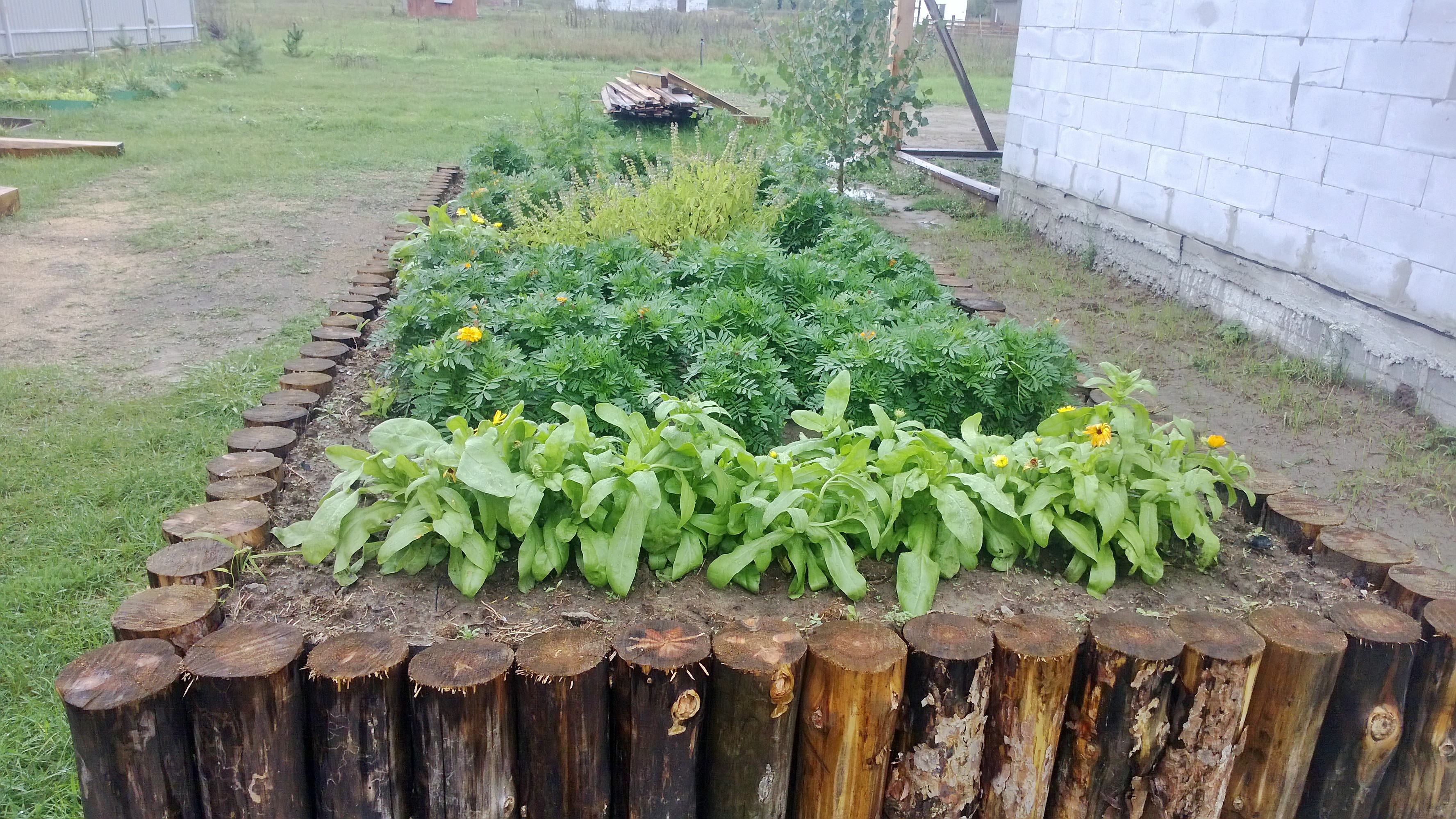 Август 2013. Антон взял отпуск к своему Дню Рождения (4 августа)… Понятно, что в целом для огорода поздновато, но он то этого не знал:). Потому под напором жены, несмотря на жару, сдался и сделал мне красиво:)) А мечтала я об огородике под травы: салат, шпинат, тимьян, щавель, лук, рукколу, горчицу… Как именно эта «бревенчатая прелесть», под звуки бензопилы «Эксперт» и криков «Я манал!», рождалась под окнами моей кухни, этот пост.