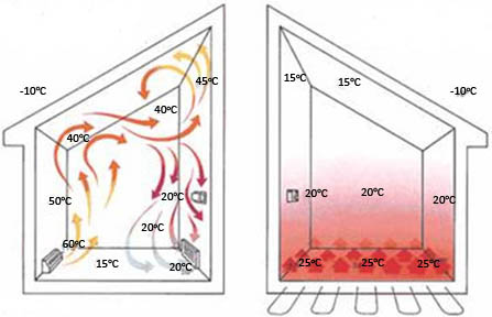 Зачем нужен коллектор? Внутри него происходит стыковка нагревательных труб с остальным теплоснабжением дома. Кроме того, здесь устанавливаются регулировочные элементы . После того как коллектор установлен, в него заводят подающую трубу (подача) и возвратную трубу (обратка). По подающей трубе вода подается от котла, по возвратной трубе вода, которая уже прошла по нагревательной системе пола и отдала цементной стяжке часть своей энергии возвращается в котел для последующего нагрева. Непрерывный поток воды обеспечивается циркуляционным насосом.