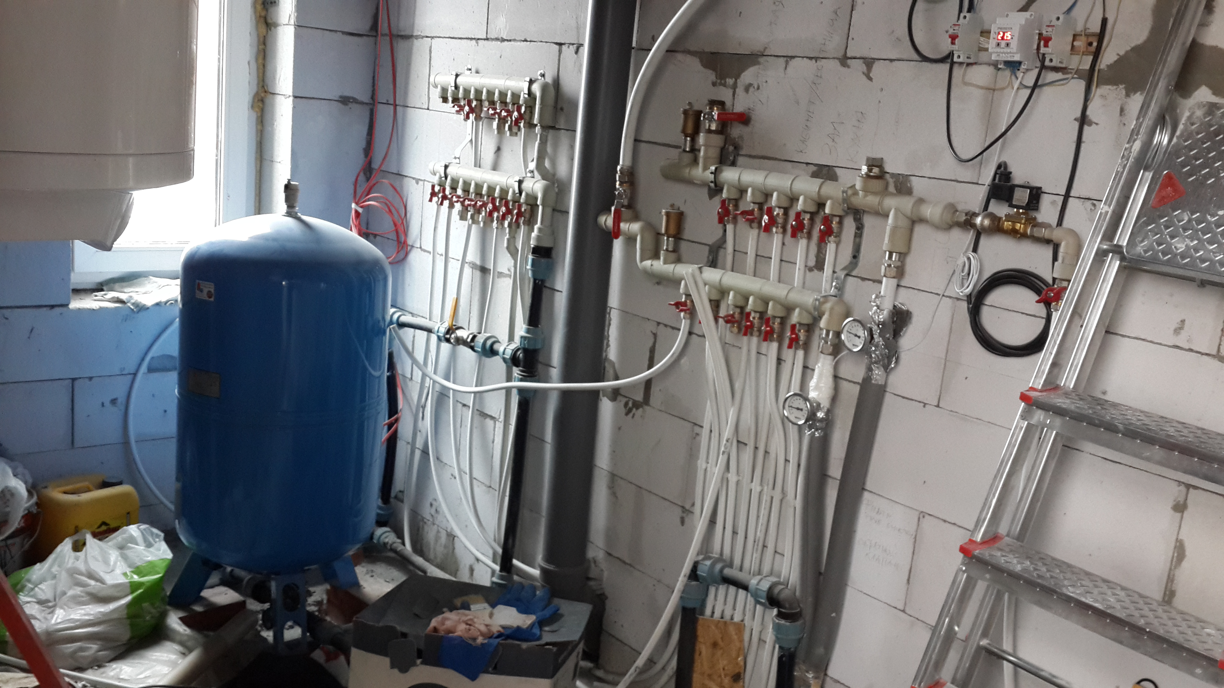 С коллекторами муж не заморачивался, паял из пластика. На случай перегрева, поставил электроклапан через термостат, на разбавление «подачи» холодной водой. Трубы для пола у нас в доме украинского производителя — «Gross Pipe». Продаются в бухтах по 50 и 100 метров.