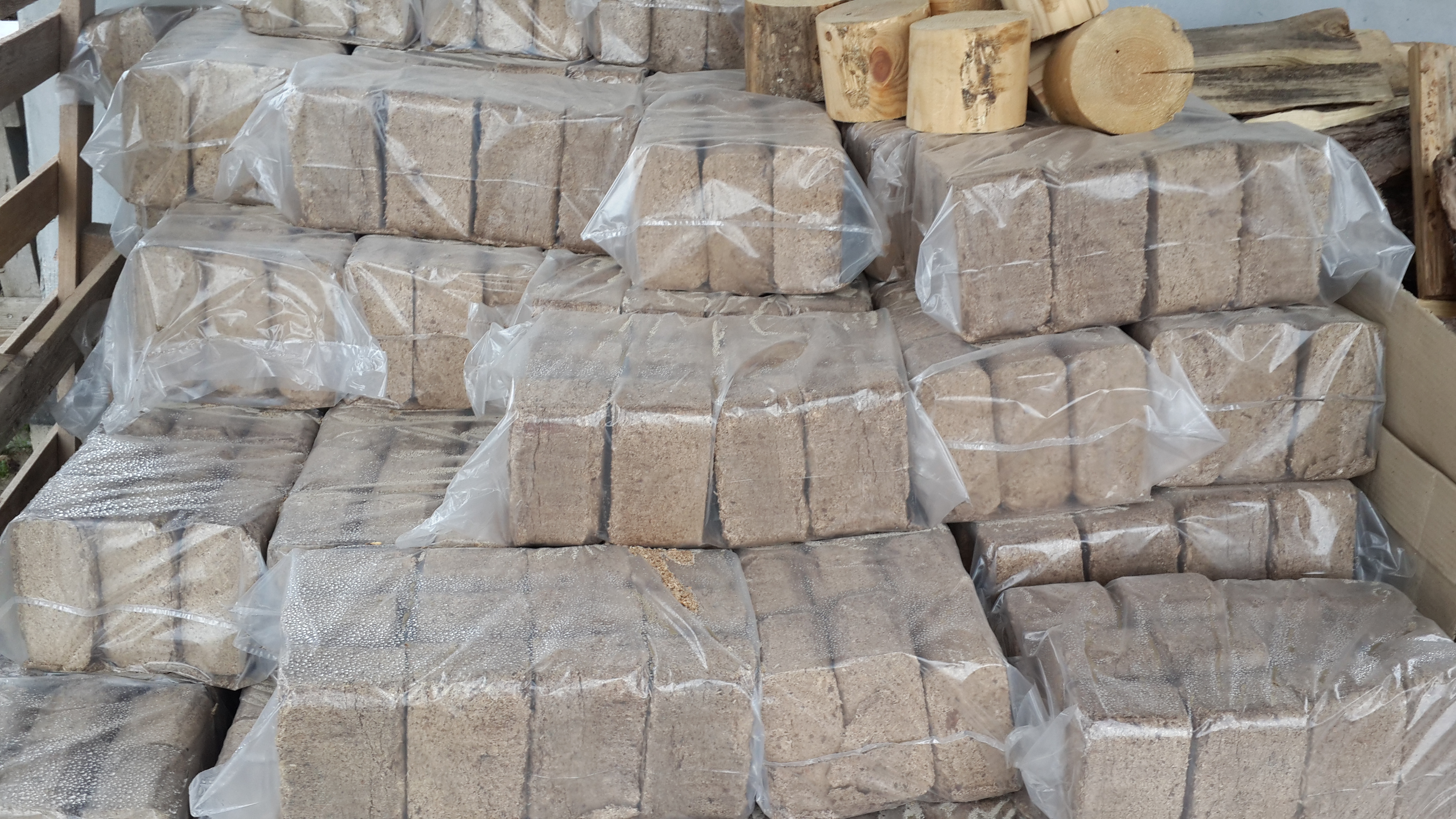 Чем топим?Для перестраховки еще летом заготовили дрова, но дровами топить не практично: много мороки, смолы, их нужно сушить… Потому в январе 2015 заказали первую тонну брикетов для пробы, и после докупили еще 3 тонны брикетов. По ссылке можно почитать про виды существующих брикетов.