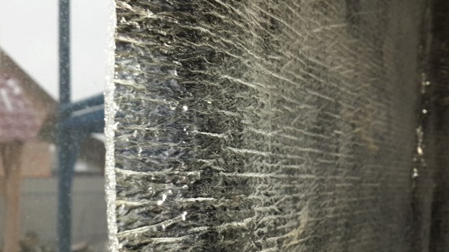 1) теплоизоляционной пленки — у нас полипропилен (или пенофол) Напомню, что ранее, читай часть№7, в плиту фундамента уже были заложены — гидроизоляция, пенопласт 5 см, сверху стяжка 10 см.