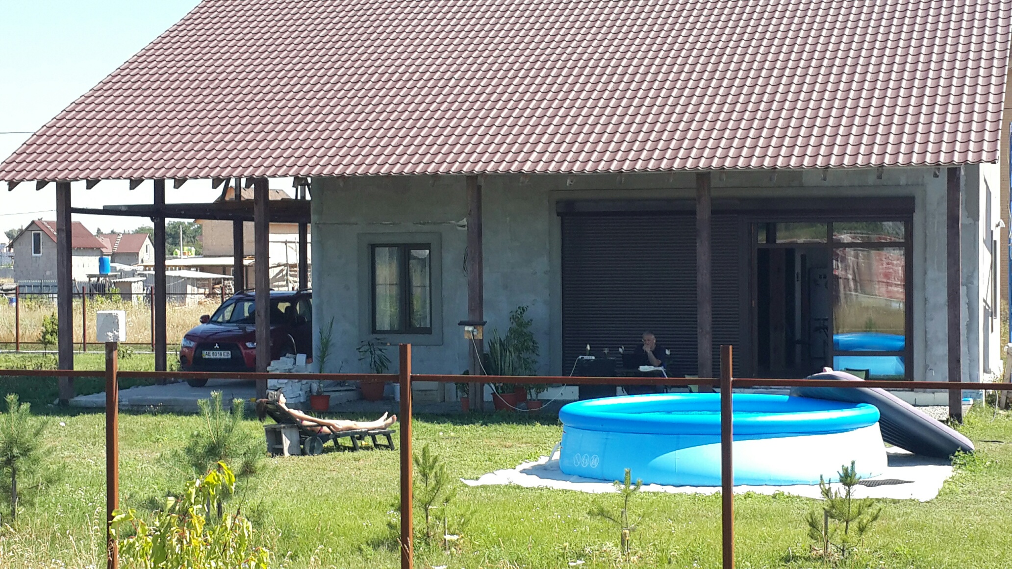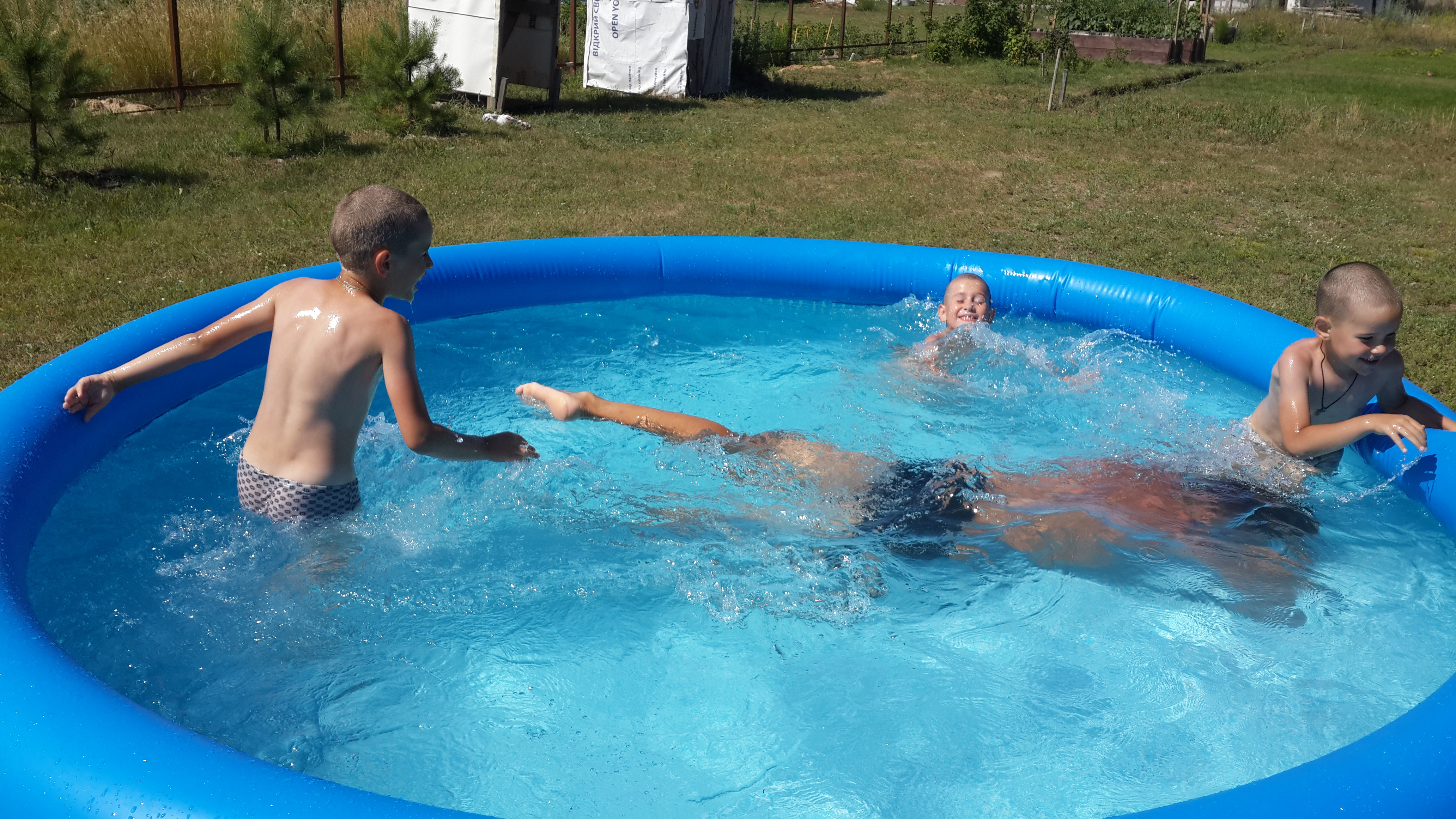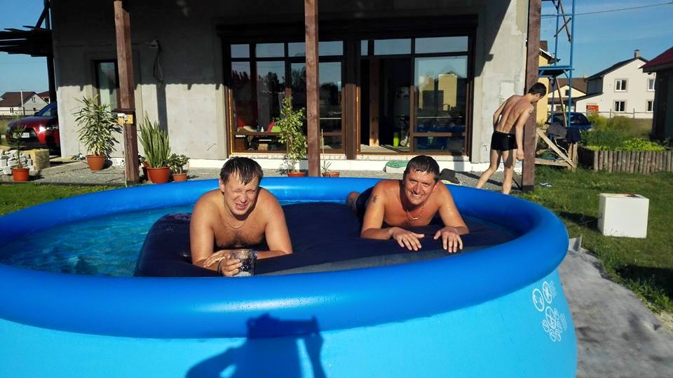 Когда-нибудь перед террасой у нас будет бассейн. Сейчас пока и террасы толком нет. Но три года назад у нас и земли и дома не было. Главное цель и желание, а время и средства вселенная подкинет! Весной 2015го муж традиционно, под майские праздники, собрался в отпуск. Глобальный проект 2015го года у нас — забор вокруг всего участка. Май, как и лето, обещали быть жаркими. Потому мы решили поставить надувной бассейн. И ни разу не пожалели!